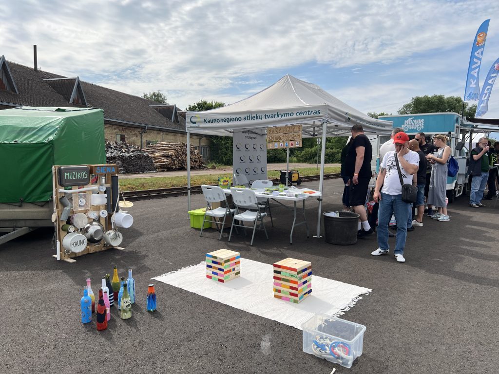 Šįkart ne tik įkūrėme pakartotinio daiktų naudojimo zoną „Atiduotuvių kiemas“. Papildėme erdvę iš antrinių žaliavų mūsų komandos rankomis pagamintais lauko žaidimais vaikams.