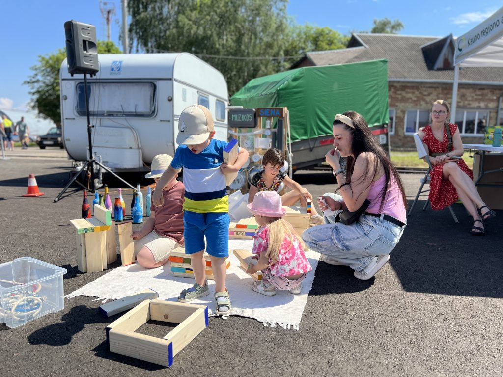 Didelio susidomėjimo sulaukė žiedų mėtymas, didelės „Jenga“ kaladėlės tapo kūrybine priemone statyboms iš vaikų fantazijos, o muzikos sieną buvo norinčių vežtis namo!