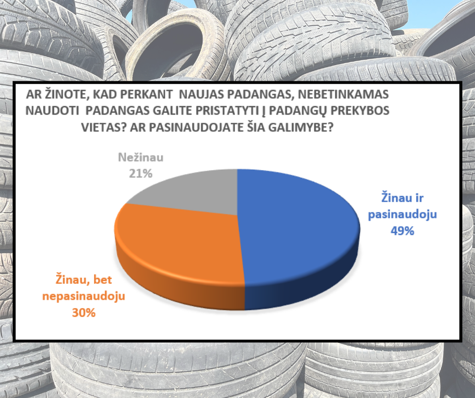 Apklausos rezultatai rodo, kad net 65% apklaustųjų nebetinkamas naudoti padangas pristato į DGASA. Maždaug 20% – naudojasi galimybe senas padangas palikti autoservise ir tik 5% pristato į prekybos vietas, kuriose perka naujas padangas. Likusi dalis apklaustųjų nurodė, jog naudojasi daugiau nei viena alternatyva senų padangų šalinimui.